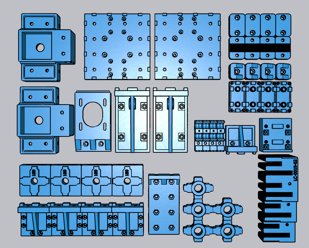 • прочие комплектующие (гибкий кабель канал оси X, гибкий кабель канал оси Y, ремни осей X и Y, шкивы, метрический крепеж, уголки, ламели),
